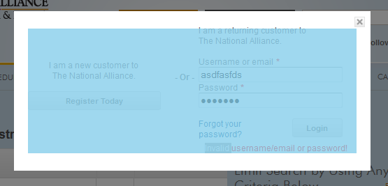 单击课程价格显示的任何注册链接,然后在用户名和密码输入中输入jibberish。