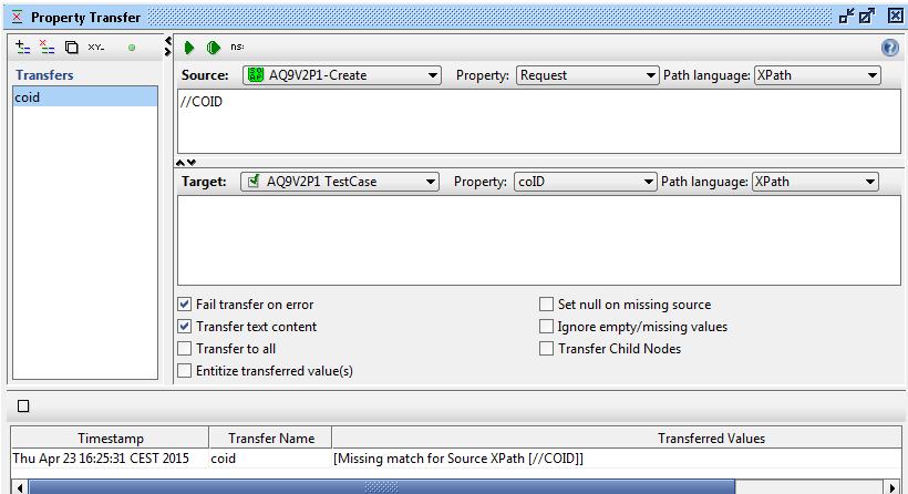 您需要名称空间。对于一个传输,您可以使用通配符://*:COID。