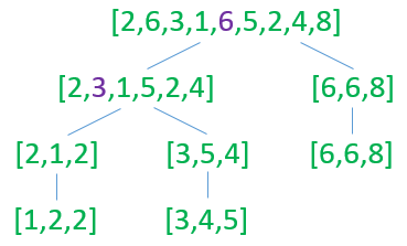 [2,6,3,1,6,5,2,4,8]在对左边的<6进行分区之后,在右边的>=6: