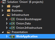 您的Onion.Bootstrapper项目对应于洋葱体系结构的最外层。这是唯一引用所有其他项目的项目。