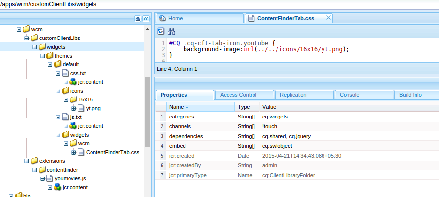 我放置的脚本文件位置:/apps/wcm/扩展名/内容查找器
