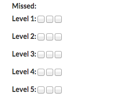 错过一天是件坏事,因为如果您错过了一天(通过复选框表示),就会将一天添加回您的current_level中(通过days_missed控制器),换句话说,只有完成的天数才能完成一个级别。