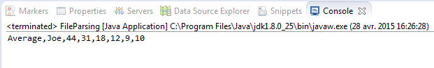我必须在另一个文件中写入以下输出: Average,Joe,44,31,18,12,9,10