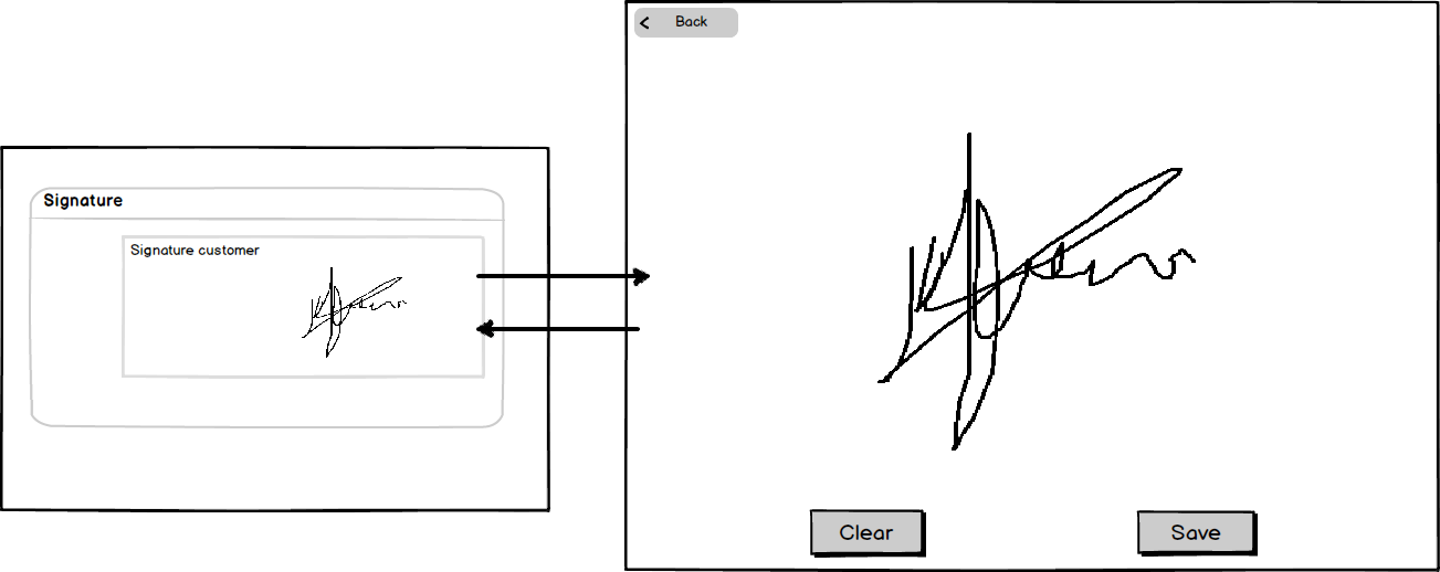 这个人点击一个按钮,系统打开一个Modal屏幕,然后显示签名垫。用户可以清除并保存图像。当他保存它并再次打开签名垫(按下按钮)时,会显示先前绘制的图像,用户可以在其中添加一些内容。