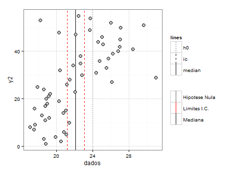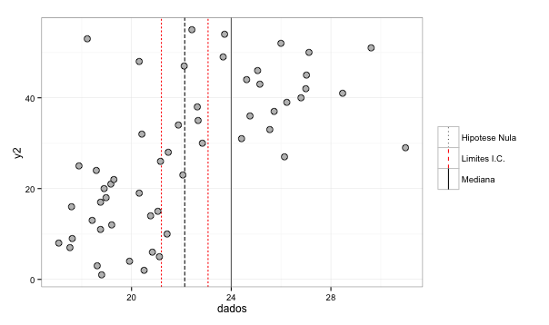 gp2 + scale_color_manual(name = '', labels = c(ic = 'Limites I.C.', median = 'Mediana', h0 = 'Hipotese Nula'), values = c(ic = 'red', median = 'black',h0 = 'grey40'))