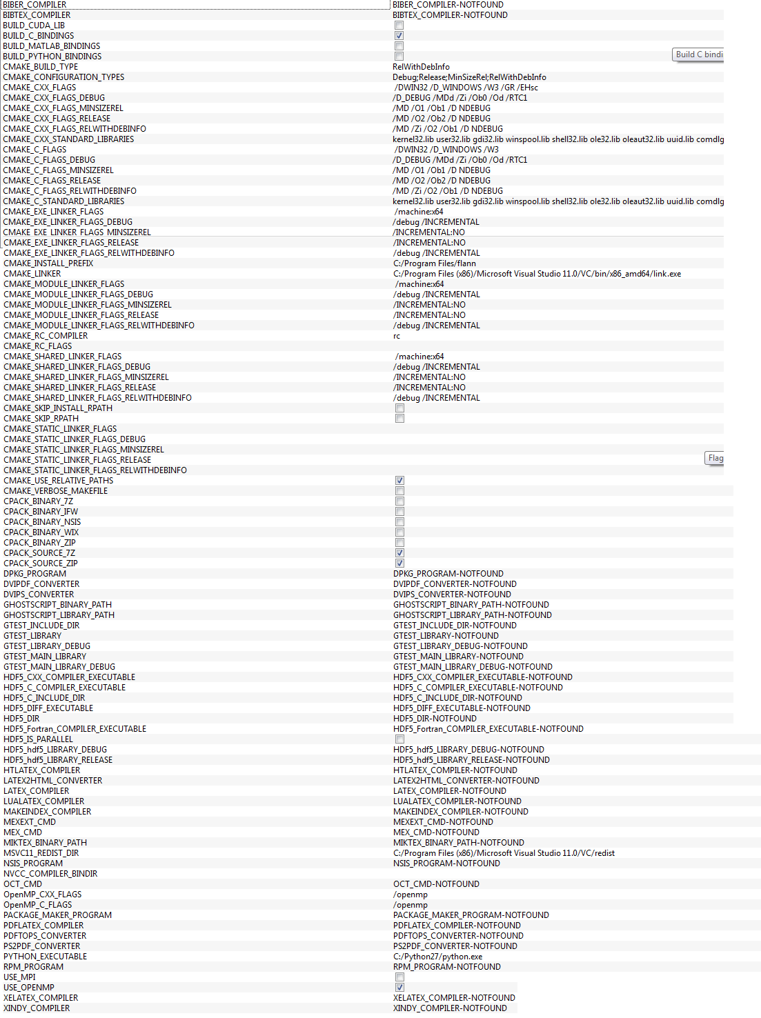 这是我所有的配置编译FLANN的图片,请帮助我。ALL_BUILD项目生成flann_cpp_s.lib,但不生成flann.lib