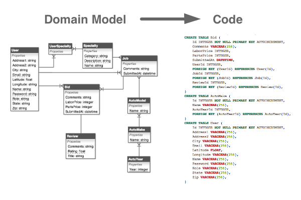 }基本上,如图所示,域模型到->代码.但另一方面呢?