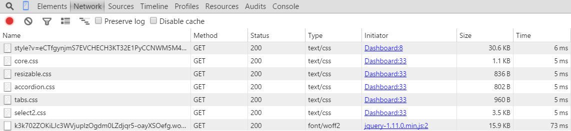 在您的代码中,@import "../themes/base/tabs.css";编译成@import "../themes/base/tabs.css"; (由于.css扩展)。这是一个“正常”的CSS导入,CSS导入需要额外的HTTP请求来加载。