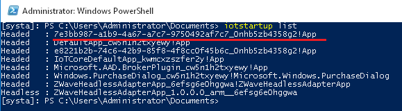 当我远程连接并运行iotstartup列表时,我会看到我的包中有这个guid名称。