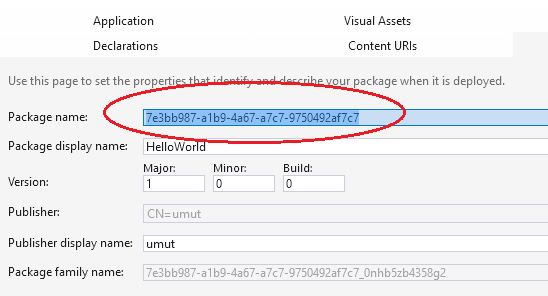 在当前版本中,默认情况下Visual会为您的应用程序生成一个随机包名,而不管您的项目名是。我的项目名是HelloWorld,但是它生成了一个完全不同的包名。