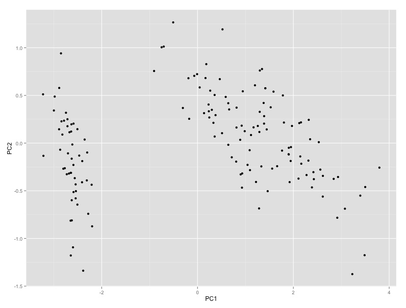 奇怪的是,自动绘图是专门为处理prcomp的结果而设计的,qplot不能处理这样的对象。我正在运行RV3.2,刚刚从github下载了ggfortify这个AM