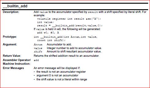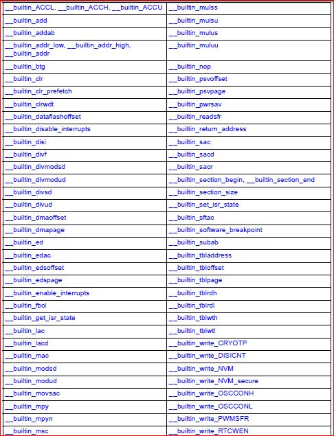 有关内置程序的完整描述,请参阅MPLAB XC16编译器用户手册(在编译器安装的"docs“文件夹下)或此处:http://www.microchip.com/mymicrochip/filehandler.aspx?ddocname=en559023