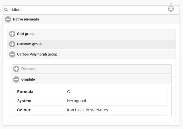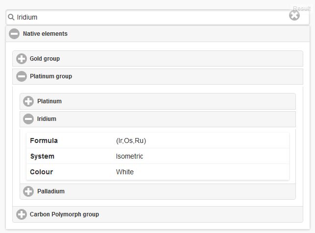 </div>示例:我想搜索铱,我获得了以下内容: