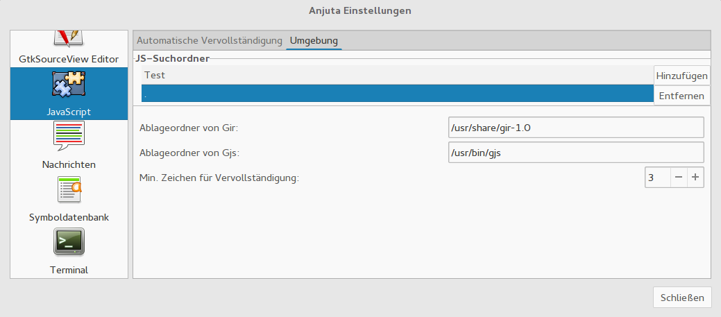 Press the Enter key to close this terminal ...在Anjuta中,我对JavaScript环境有以下设置: