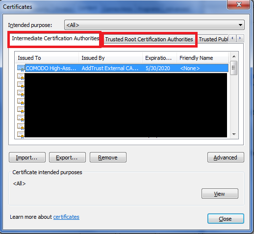 不可避免地,选择此选项将证书安装到“中级证书颁发机构”,而不是“受信任的根证书颁发机构”。