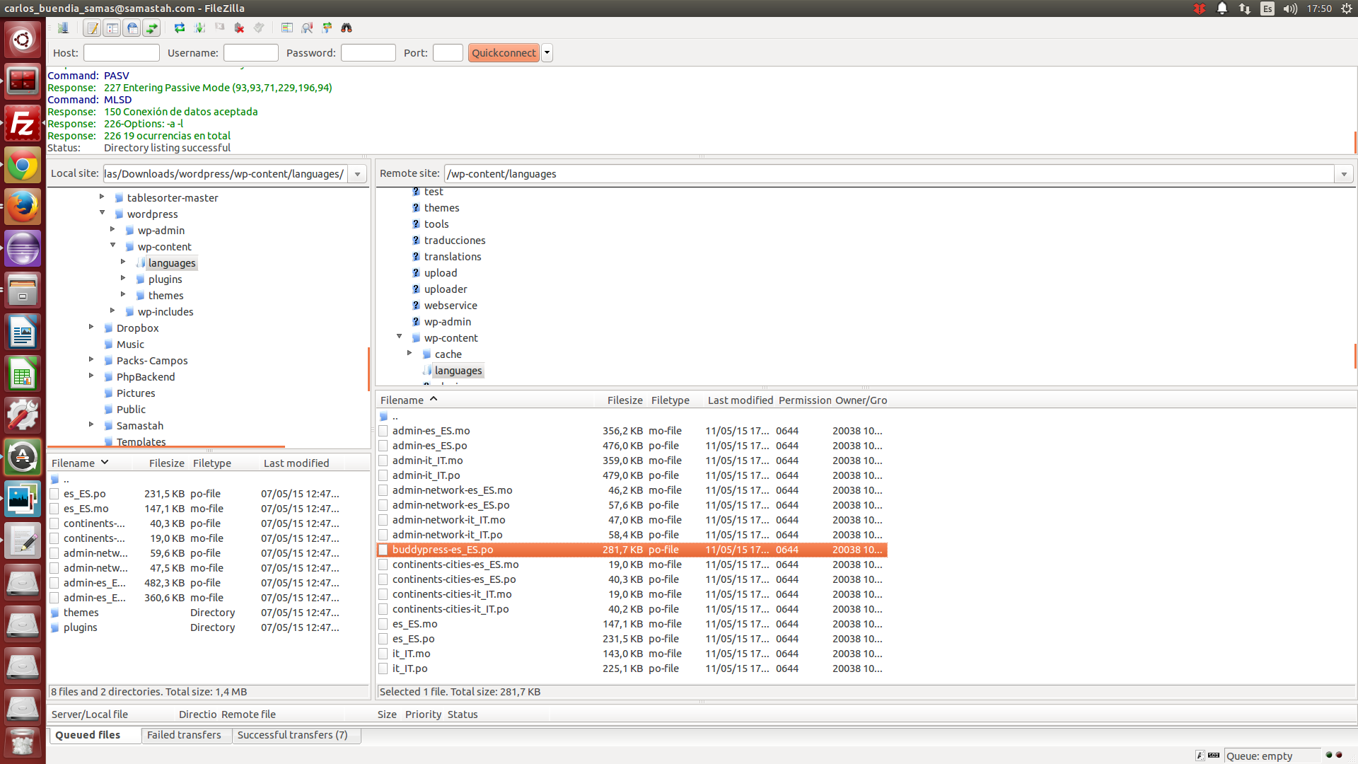 您需要创建和上传buddypress-es_ES.mo文件。.po文件用于创建.mo文件。您不需要上传.po文件。