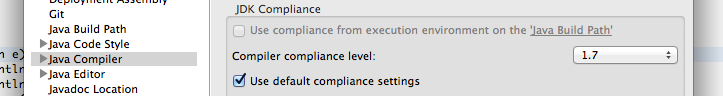 Java HotSpot(TM) 64-Bit Server VM (build 24.79-b02, mixed mode)在Eclipse中,我选择编译器Java1.7:
