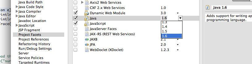 但我得到了一个面版错配。在项目方面,我甚至不能选择Java1.7: