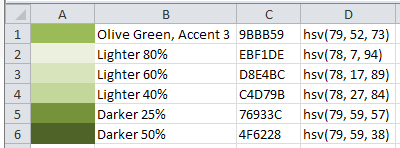 名为“橄榄绿,口音3,轻60%”的颜色是Excel调色板的一部分。