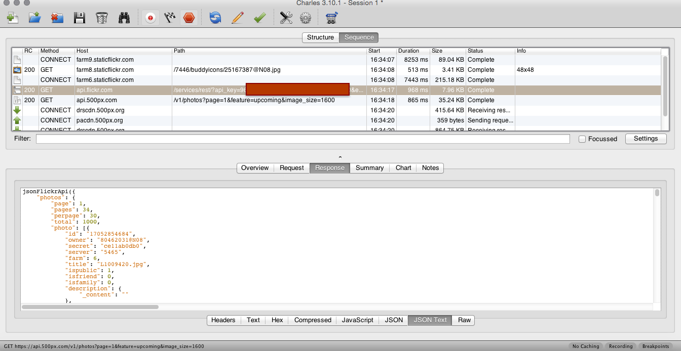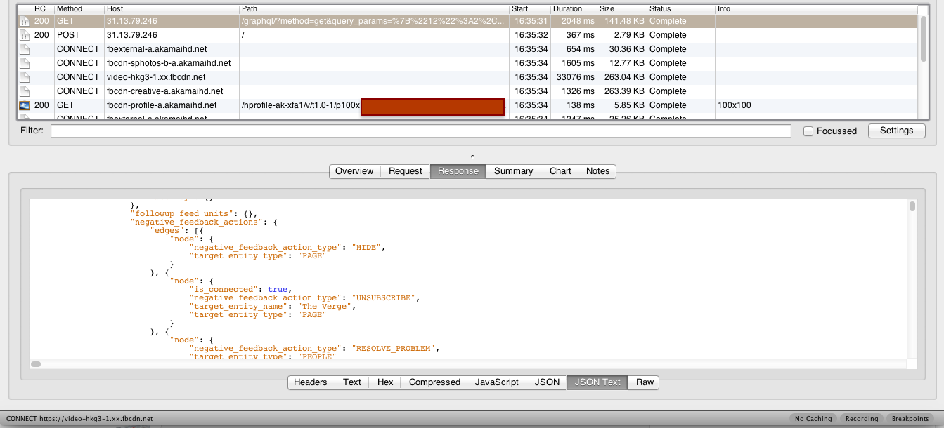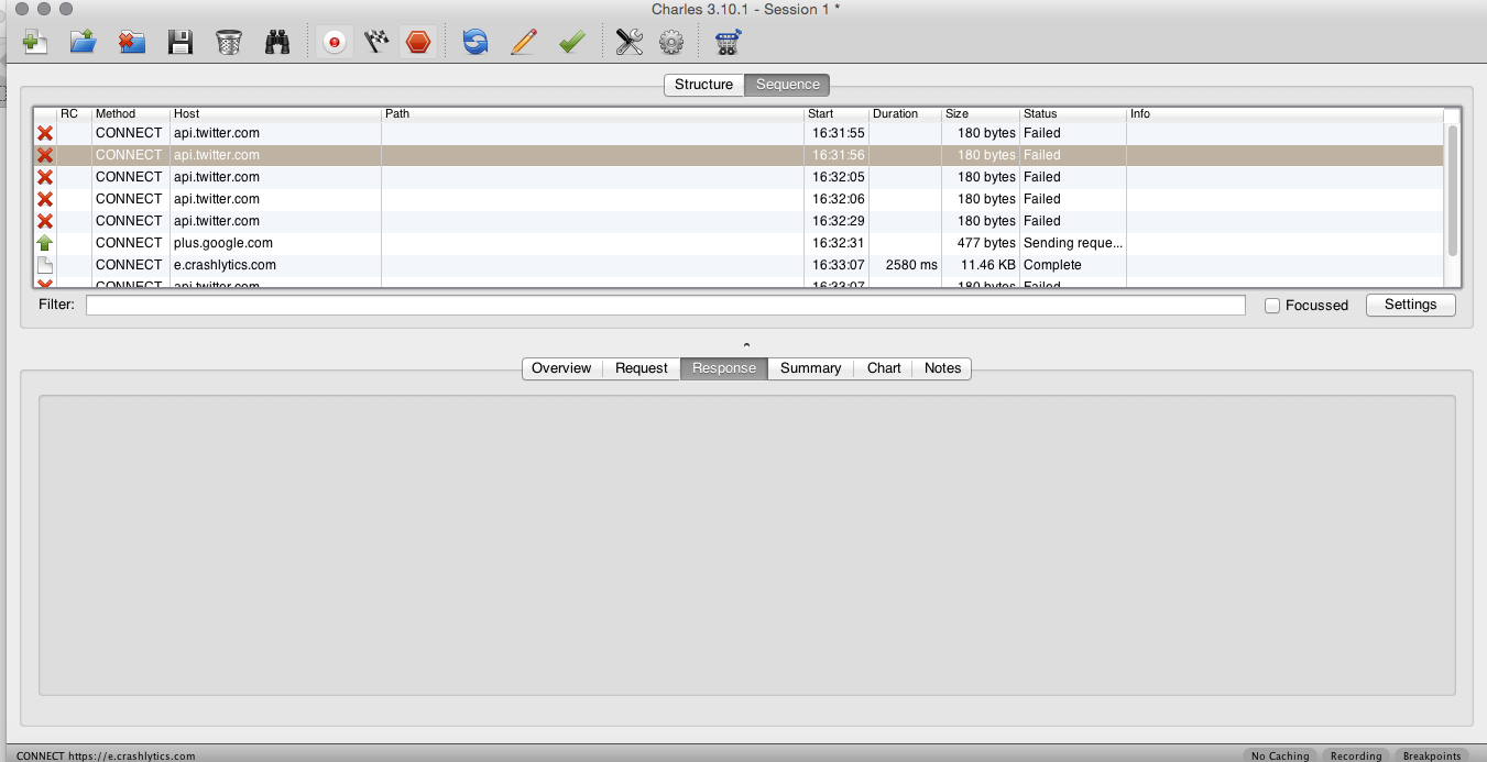 我可以通过启用ssl代理来调试来自所有其他应用程序的API调用。但是SSL代理并不适用于Vine(api.vine.com)。我试过twitter、facebook和flickr应用程序。我可以调试facebook和flickr,也可以看到JSON响应,但是对于twitter,这失败了。