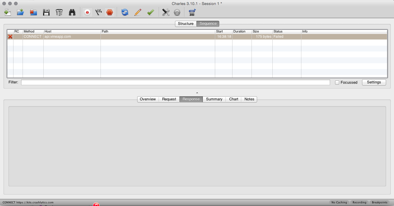 我正在尝试使用Charles调试代理来调试Vine。我有一个IOS版本的Vine应用程序运行在我的设备上,我设置了wifi代理。
