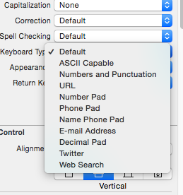 尝试从接口生成器设置属性。请参阅图像并选择数字和标点符号选项。