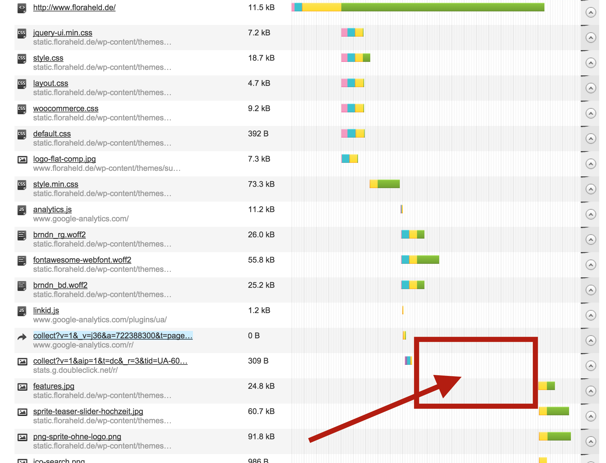 我试过移除分析。这一差距仍然存在,而分析已从瀑布中移除(见第二屏幕)。我有很多css。因此,我清除了所有样式表,但差距仍然存在。