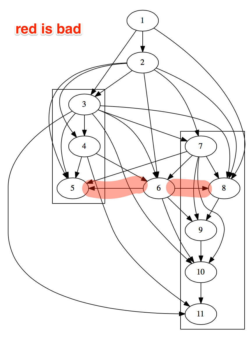 通常,所有定向边缘的头部都比尾巴低。但在某些情况下,它们被画成一个水平直线段,即头和尾处于同一水平。在我的例子中,这是在我定义子图集群之后发生的。