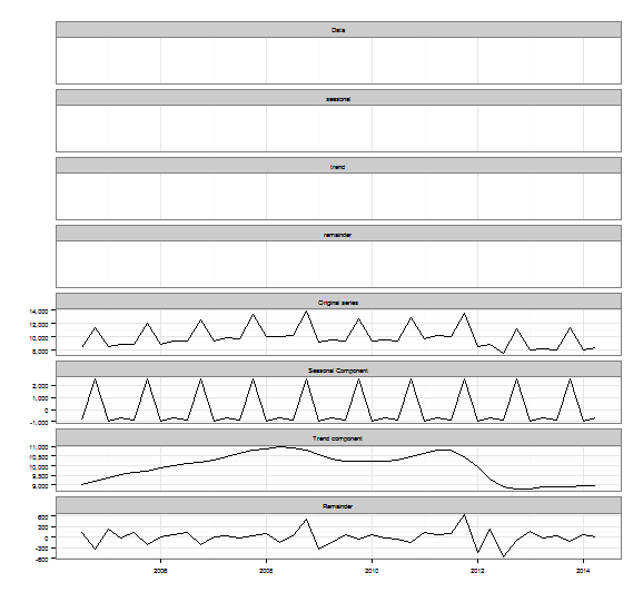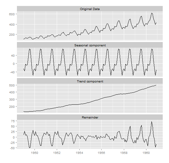 labels=c("Original series", "Seasonal Component", "Trend component", "Remainder"))