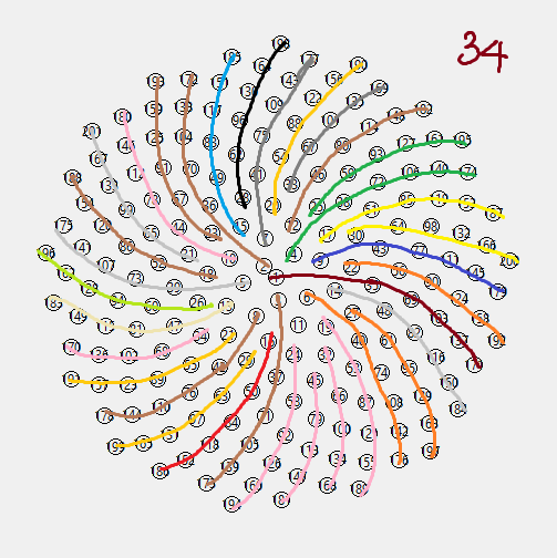 事实上,这些数字并不神奇,它们来自斐波纳契数字,基于你螺旋的层次,你应该去检测它。因此,你总是有数字差异: 0,1,1,2,3,5,8,13,21,34,55,.