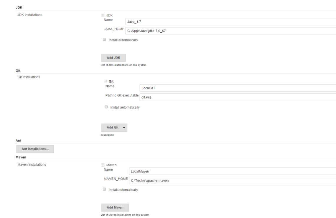 我已经在Windows 8上安装了Tomcat 7,在Windows 8上部署了Jenkins。我在Jenkin设置中配置了JDK、Ant和Maven。在Maven部分中,我将名称命名为LocalMaven,MAVEN_HOME命名为C:\Techie\apache-maven。当我进行测试构建时,它给了我以下错误,即mvn.bat是不被识别的。然后在CMD中输入mvn命令进行检查。它提供了一些maven语句,这意味着maven在PATH变量中是可用的。
