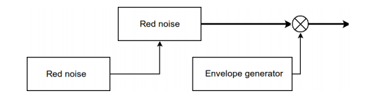 我有一个红色噪声发生器,它返回一个双倍数组,其值介于-1和1之间(它是从描述的白噪声生成的)。我现在该怎么办?我如何控制第二个红色噪音?我想这并不意味着我应该控制第二个信号的振幅。是吗?获得火箭发动机声音效果所需步骤的方案附在下面。