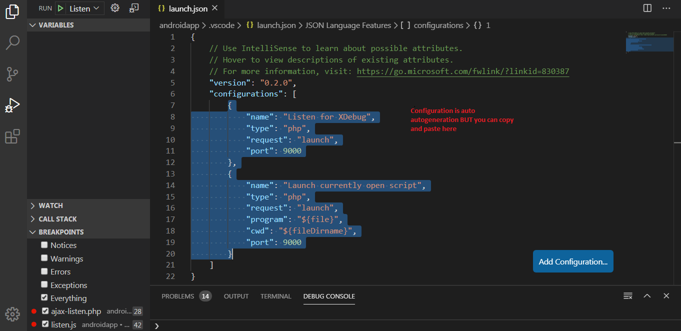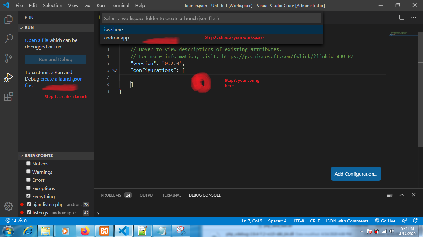 我下载了Visual代码,但不知道如何配置调试器。