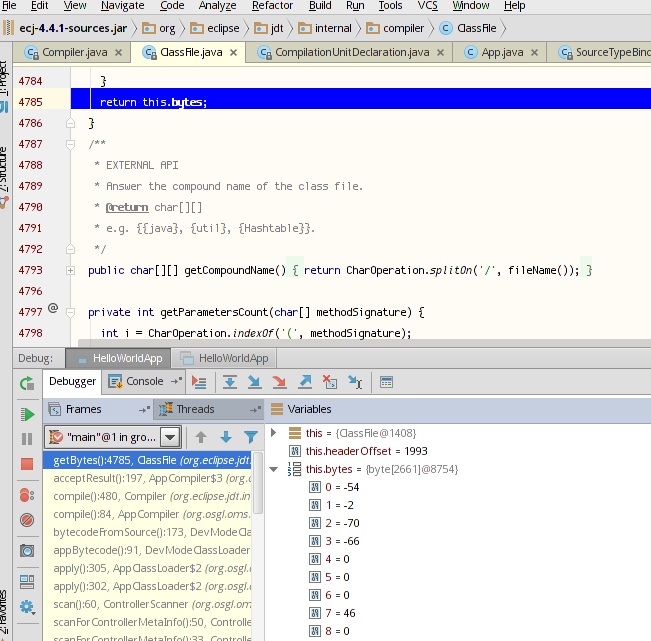 源代码由javac编译的字节码解压缩: