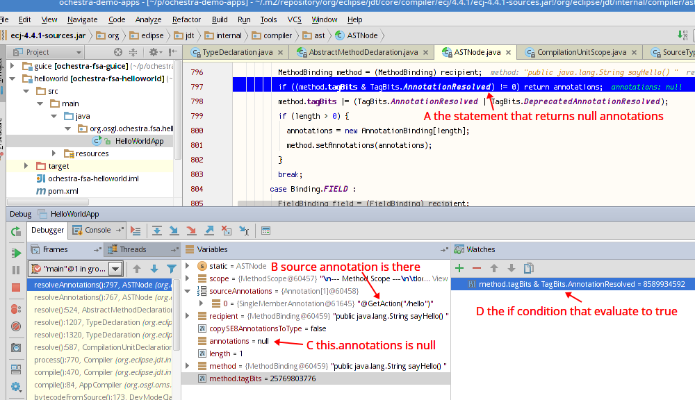 因此,它位于ASTNode.resolveAnnotations()方法#797行中:
