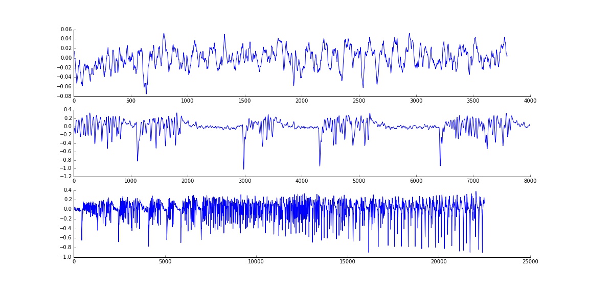 关于脑电图数据,最简单的说法是它有1/f或“粉红色”分布,这是最简单的说法。1/f信号的一个有趣之处在于它们是非平稳的,不能被任何阶的ARMA过程正确地建模。(1/f意味着低频波动是任意大的,这意味着任意距离的点仍然是相关的,而且你拥有的数据越多,你所能检测到的相关性就越远-- ACF永远不会收敛到任何有限的东西。另外,重要的是要认识到光谱含量和类ARMA过程是超级相关的,因为信号的自相关函数完全决定了它的光谱分布,反之亦然--这两个函数是相互之间的傅里叶变换。