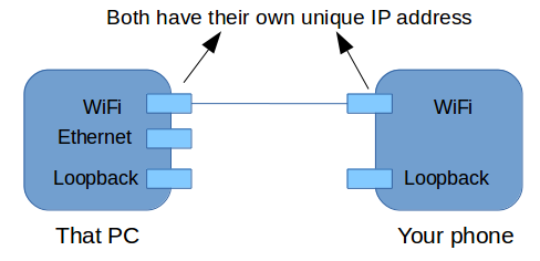 而且都有自己独特的IP地址。如果你想从你的手机连接到那台电脑,你应该知道该PC的无线局域网接口的IP地址。
