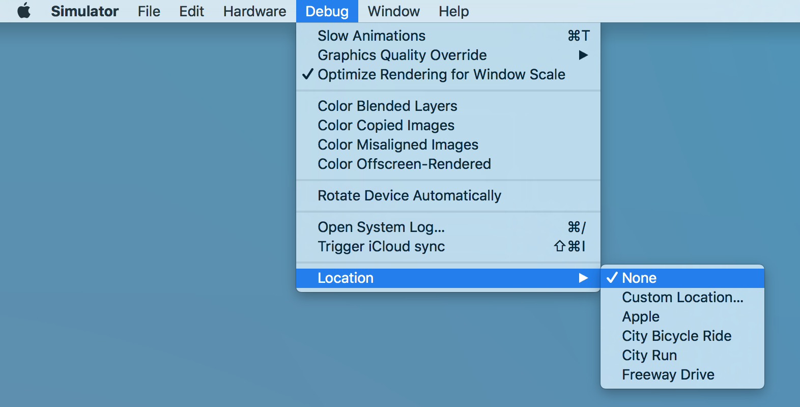 这是一个古老的问题/答案,但它没有考虑模拟器的用例。也就是说,确保您的没有调试> Location > None,如下所示: