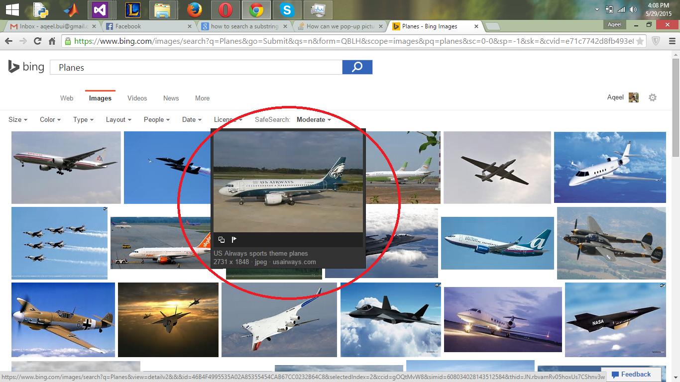 这是我正在做的一个项目的搜索结果,我真正想做的是,我想让图片弹出,就像上面在bing搜索中显示的那样。