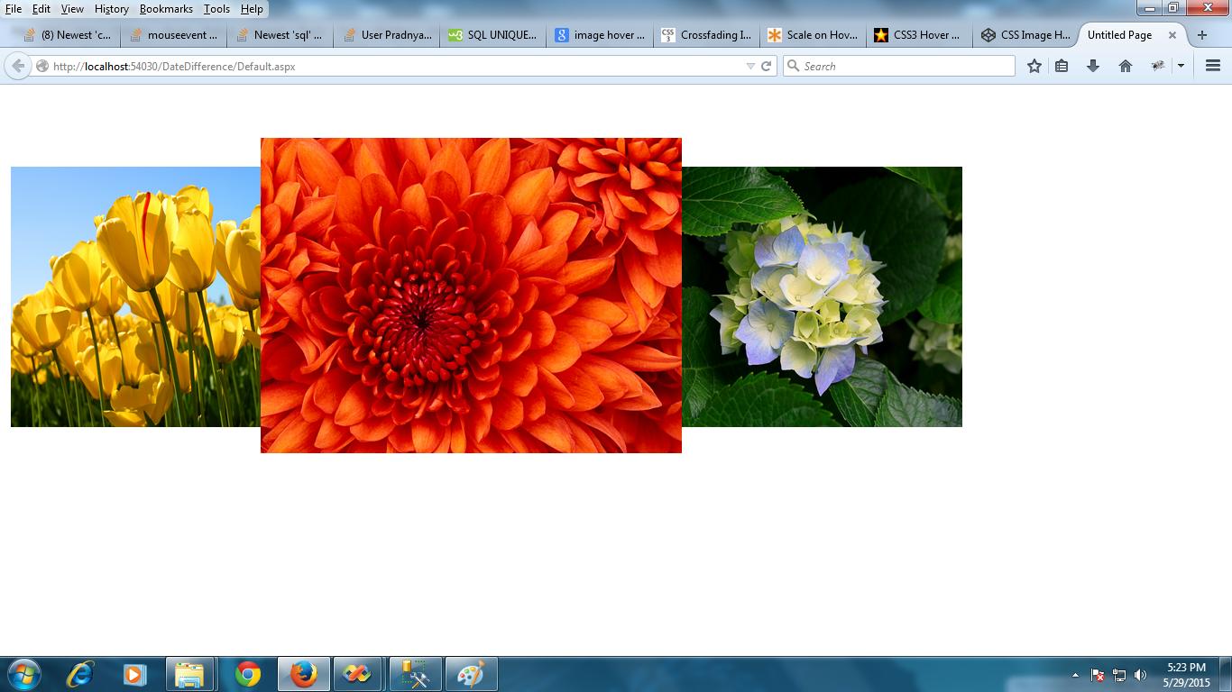 接下来,我们将它们绑定到MouseEnter事件。在MouseEnter上,我们将弹出式图片框放置在悬停图像之上,我们设置了相同的图像,但我们使其稍微大一些,并在底层图片上居中,并显示弹出式图像。