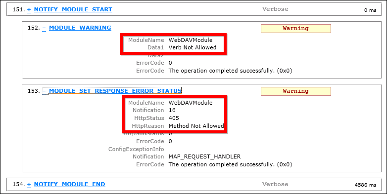 使用FRT,我能够生成失败请求的跟踪,这向我展示了以下内容: