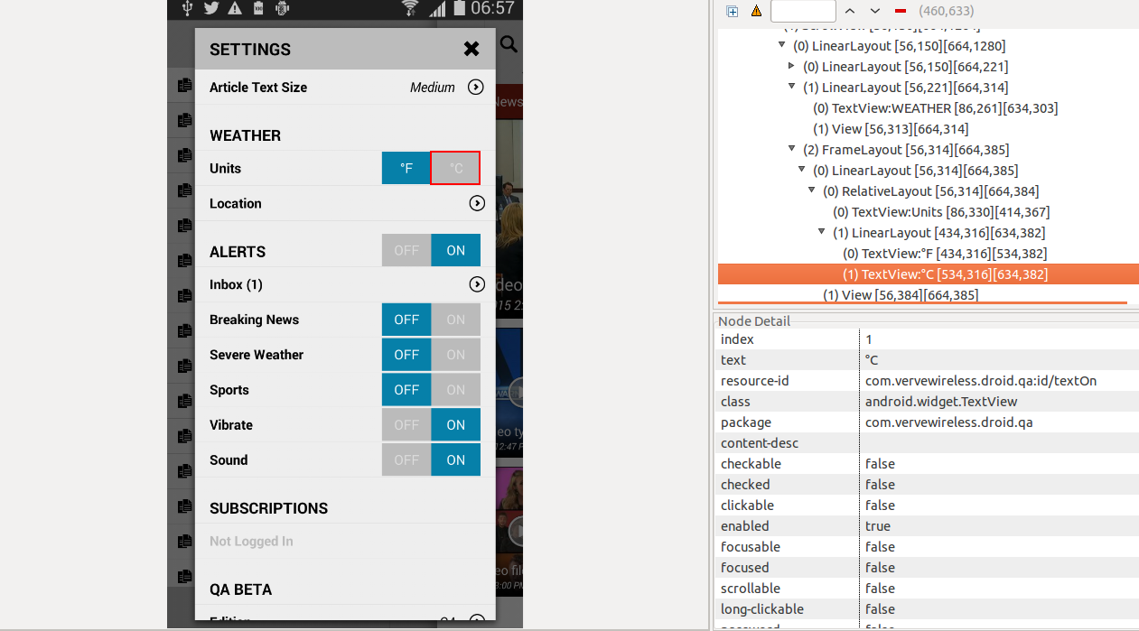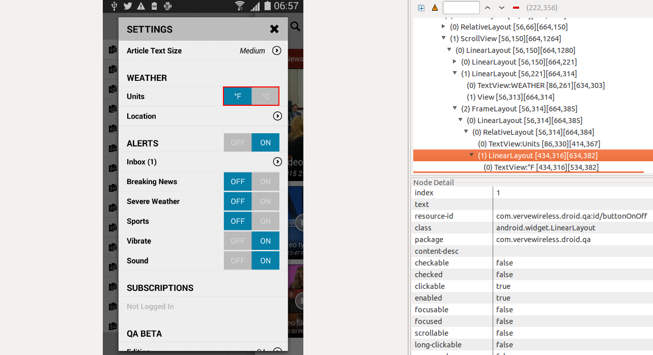 为了编写自动化代码,我正在使用uiautomatorviewer(android工具)检查一个应用程序。