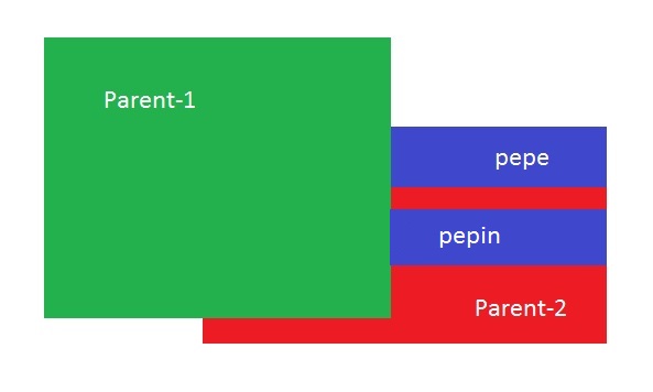 对您来说,另一种可能的解决方案是将Parent-1嵌套到Parent-2中,然后使用position: absolute将Parent-1放在任何您想要的位置。