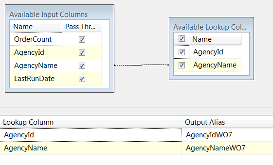 <Column SourceColumn="AgencyId" TargetColumn="AgencyIdWO7" />