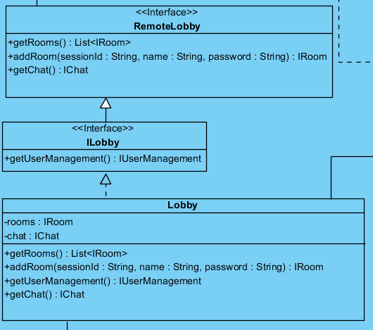 RemoteLobby中的每个方法都抛出ILobby中的一个RemoteException.方法,而不是。