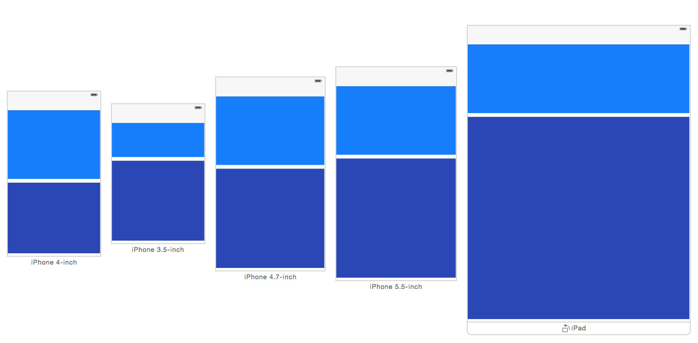 在iPad上的问题,底部的视图,它是非常大的,我需要这两个竞争几乎相同的高度,就像在附加的照片为iPhone-4英寸