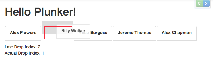 我正在使用角拖放指令- 角点滴列表。当我将它切换为一个水平列表时,我尝试拖动框时,dndPlaceholder元素(即灰色框)的样式不像我想要的那样。