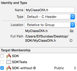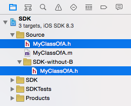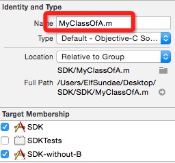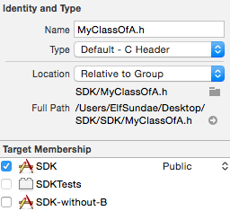 我开发了一个作为标准iOS框架分发给发行商的SDK。为了尽可能清楚,假设我的SDK被称为'A‘。‘’需要一个第三方iOS框架(称为'B')来管理特定的功能。例如,我在“A”中有一个类,如下所示: