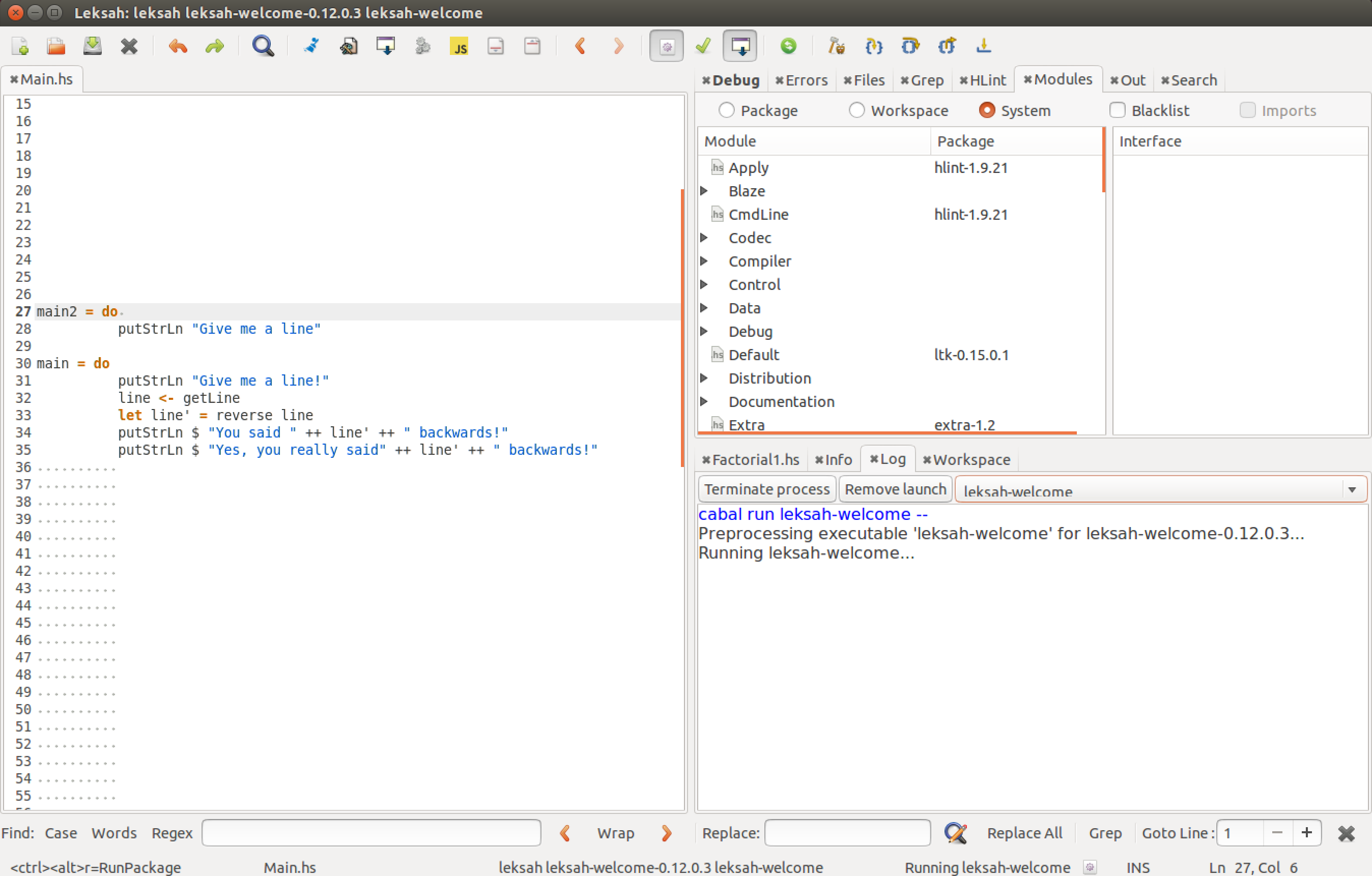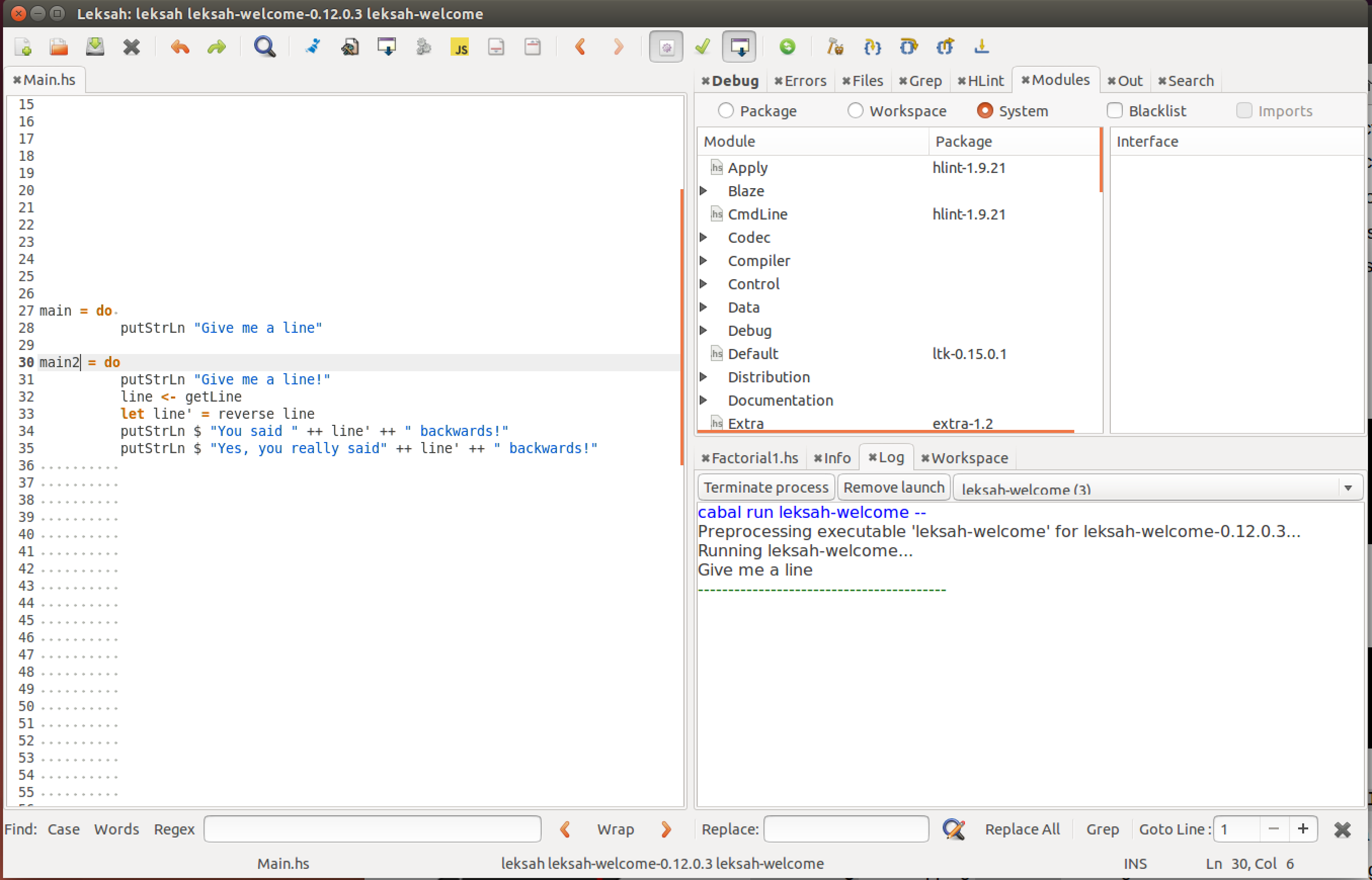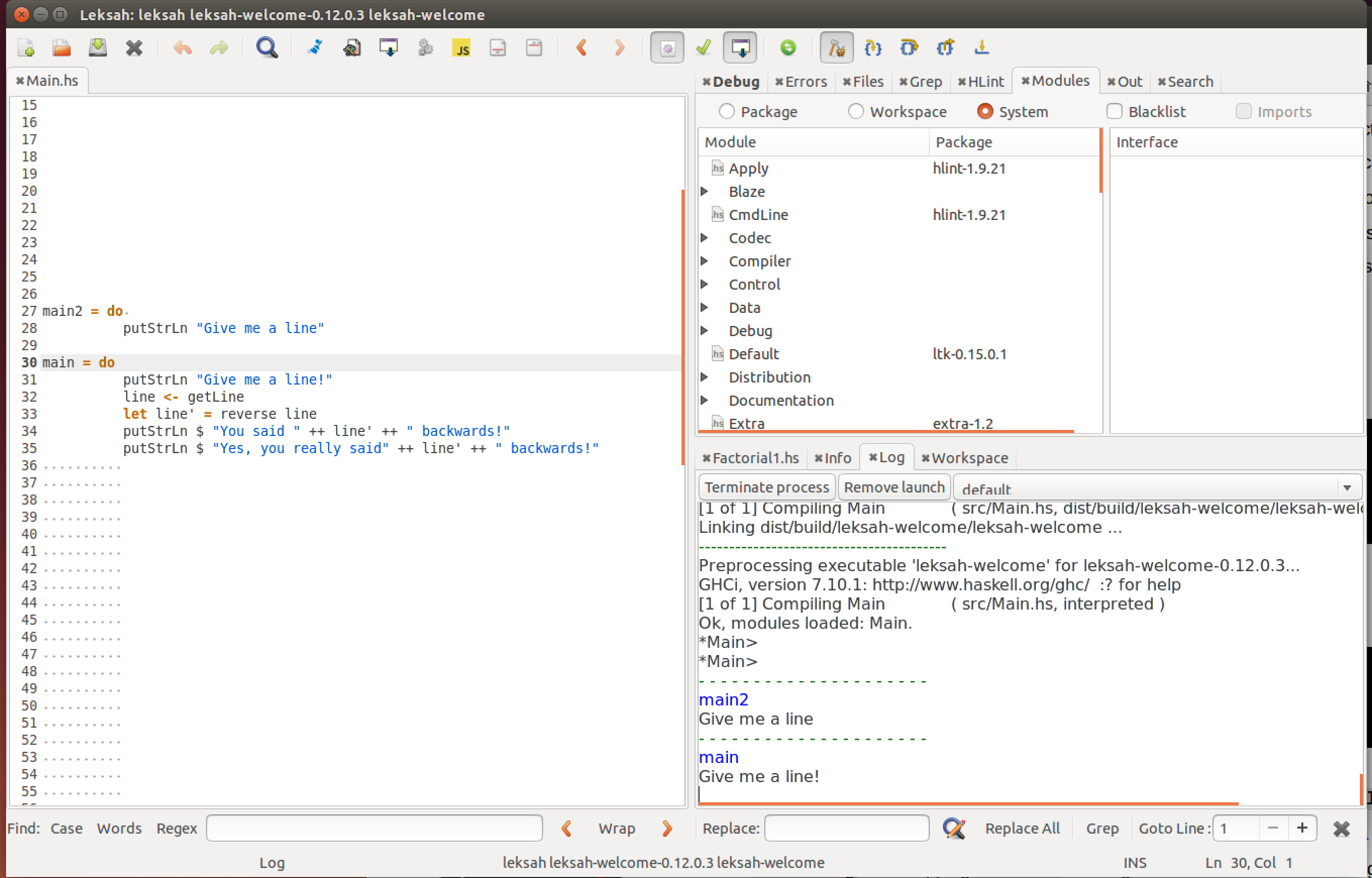 第二种方法:在Leksah中使用GHCi。