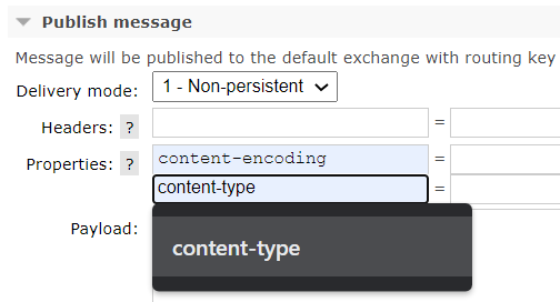 }其他的解决方案是在GO中创建一个基本的应用程序来发布消息,添加内容类型,并且运行良好,因为问题似乎出现在RabbitMQ管理控制台中。